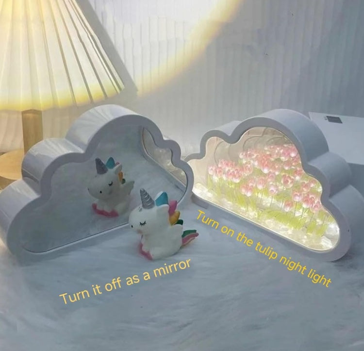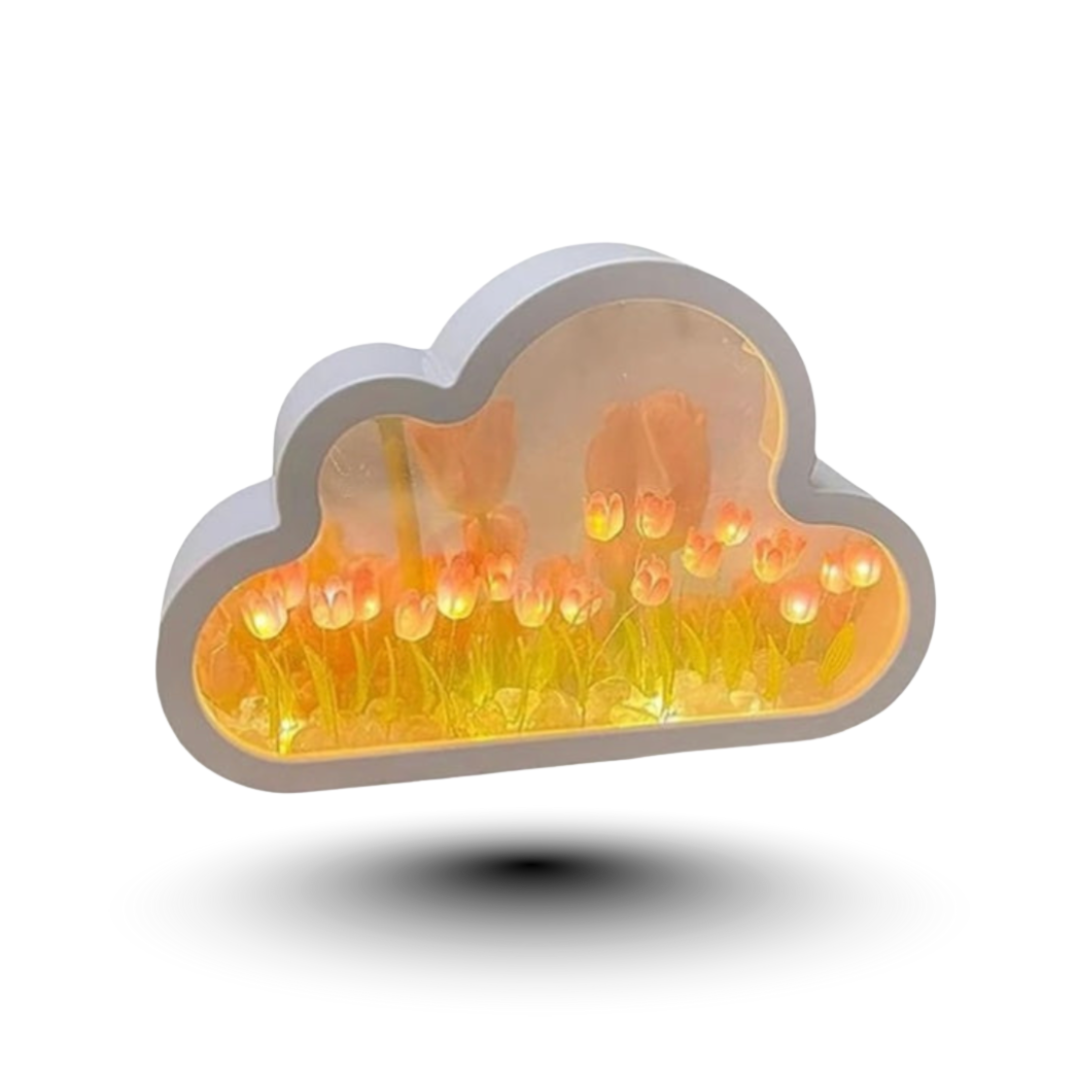 Tulip Flower Lamp – A dreamy decorative lamp featuring infinite tulip reflections in a soft cloud frame, perfect for cozy ambience and gifts.